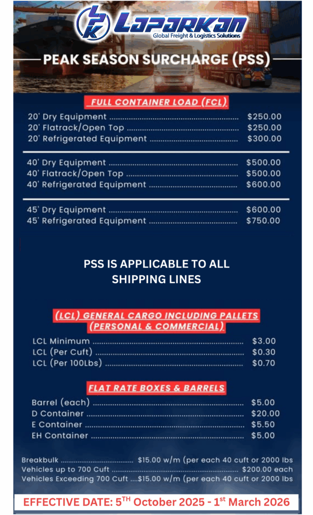 Peak Season Surcharge (PSS) Advisory